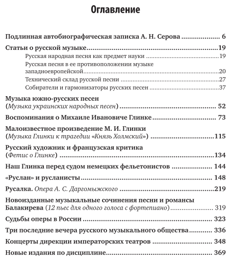 Настоящая книга раскрывает нам Серова в большей степени как музыкального критика. Его высказывания о русских и украинских народных песнях, о развитии русской оперы и ключевых музыкальных произведениях того времени сопровождаются не только точными замечаниями автора, но и нотами, в которых читатель найдет наглядное подтверждение сказанному.