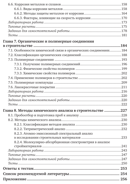Учебное пособие рассматривает специальные разделы химии, представляющие интерес для строительного дела. В нем изложены свойства воды и ее роль в строительстве, применение ПАВ в строительстве, основные виды строительных материалов на основе неорганических вяжущих веществ, металлов и полимеров, методы химического анализа строительных материалов. Предлагаемое издание состоит из восьми глав, в каждой из которых кратко изложены теоретические вопросы темы, необходимые для выполнения лабораторных работ, решения кейс-заданий, контрольных работ, тестовых заданий.