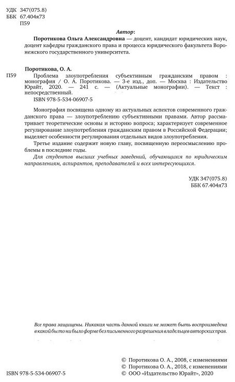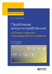 Проблема злоупотребления субъективным гражданским правом 3-е изд. Монография (Ольга Александровна Поротикова); ЮРАЙТ, 2018