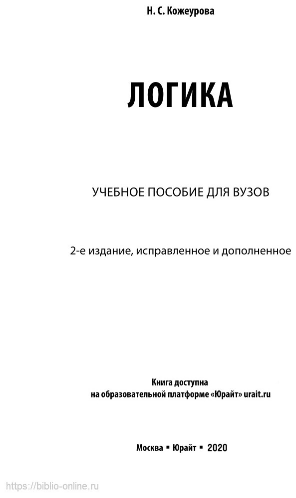 Логика 2-е изд. испр. и доп. Учебное пособие для вузов (Наталья Сергеевна Кожеурова); ЮРАЙТ, 2018