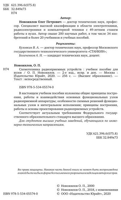Схемотехника радиоприемных устройств 2-е изд. испр. и доп. Учебное пособие для академического бакалавриата (Олег Петрович Новожилов); ЮРАЙТ, 2019