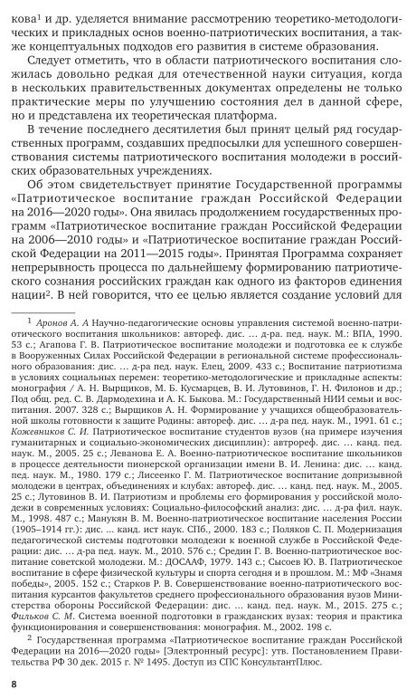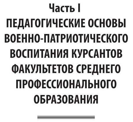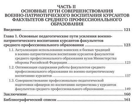 В настоящем учебном пособии исследуется проблема совершенствования военно-патриотического воспитания курсантов факультетов СПО. Рассматриваются педагогические основы военно-патриотического воспитания курсантов, а также основные педагогические пути усиления военно-патриотического воспитания.