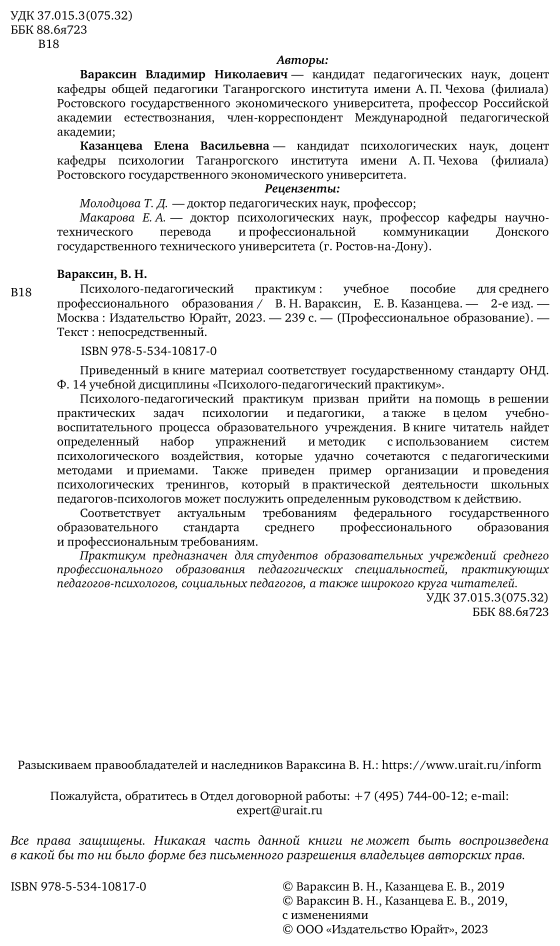 Сервис сравнения цен СкидкаГИД предлагает сравнить цены на товар «Книга: Психолого-педагогический практикум 2-е изд. Учебное пособие для СПО (Вараксин Владимир Николаевич; Елена Владимировна Казанцева); ЮРАЙТ, 2022»