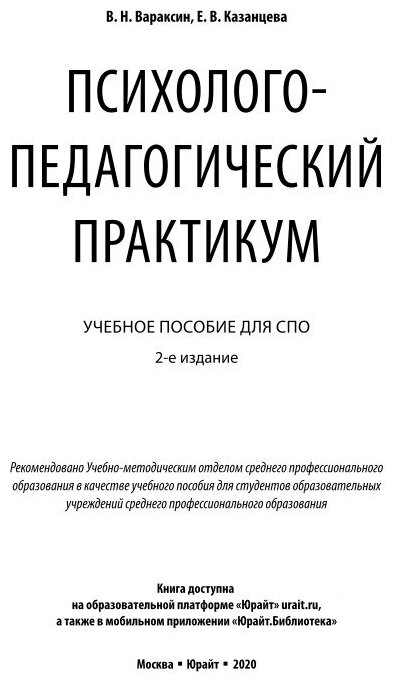 Психолого-педагогический практикум 2-е изд. Учебное пособие для СПО (Вараксин Владимир Николаевич; Елена Владимировна Казанцева); ЮРАЙТ, 2022
