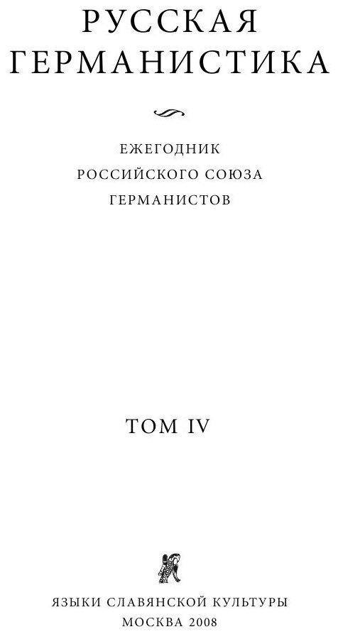 Русская германистика. Ежегодник Российского союза германистов. Том IV (Сборник статей); Языки Славянской Культуры, 2008