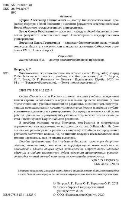 Энтомология: скрыточелюстные насекомые (класс entognatha). Отряд collembola – ногохвостки. Учебное пособие для вузов (Бугров Александр Геннадьевич, Булэу Олеся Георгиевна, Березина Ольга Георгиевна); ЮРАЙТ, 2022