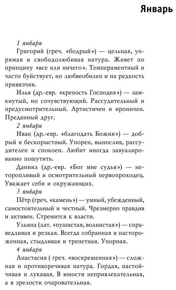 В линию жизни любого человека плотно вплетена линия его имени. Обе эти линии тесно соприкасаются, а потому оказывают друг на друга сильное влияние. Данная книга представляет собой своеобразный календарь, каждая дата в котором связывается с определенным именем или несколькими именами, имеющими определенное толкование. Благодаря календарю можно узнать, какое имя окажет желаемое воздействие на характер и судьбу человека, а какое произведет противоположный эффект.