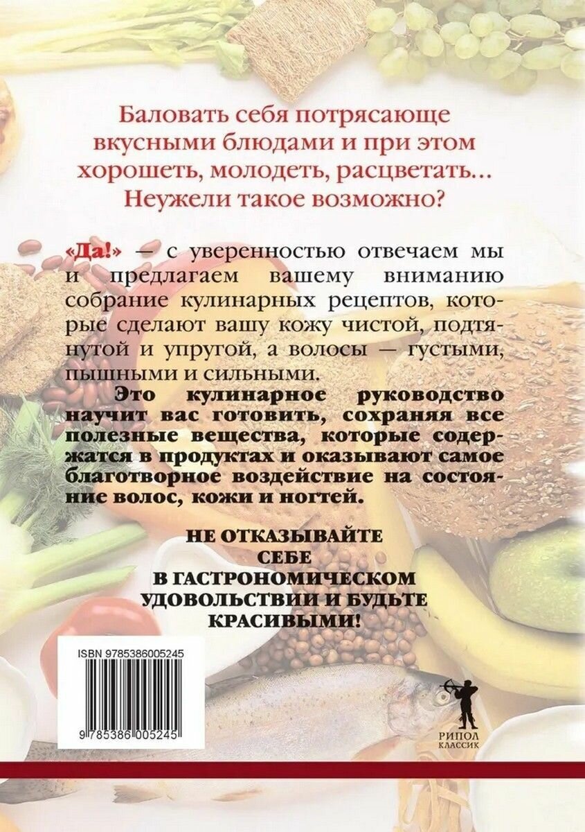 В этой книге собрано множество рецептов полезных и очень вкусных блюд – от простых до самых изысканных, приготовив которые можно улучшить состояние волос, кожи и ногтей, сделав свой путь к красоте очень приятным.