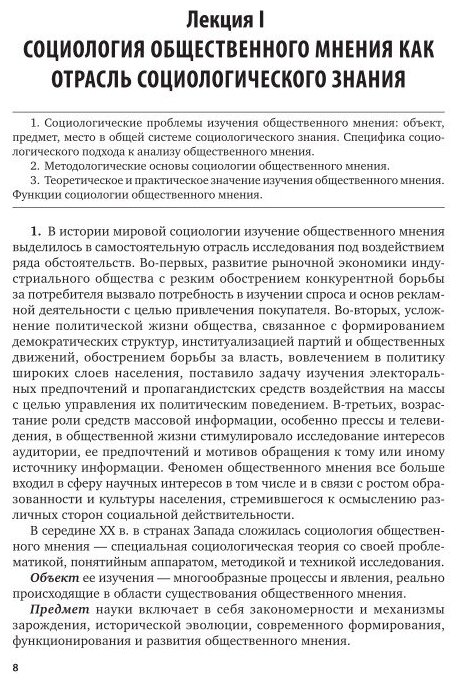 Цель предлагаемого пособия – познакомить читателей с социологическим подходом к изучению теории общественного мнения, исследовать динамику становления понятия от древности до наших дней, раскрыть его природу и основные свойства, проанализировать особенности функционирования общественного мнения в различных сферах жизни; определить понятийно-категориальный аппарат исследуемого явления и раскрыть его связь с другими научными дисциплинами, а также показать взаимосвязь общественного мнения и средств массовой информации. Особое внимания уделяется основным проблемам методического обеспечения в сфере исследования общественного мнения, специфике и особенностям прикладных аспектов его изучения в социологических исследованиях. Соответствует актуальным требованиям Федерального государственного образовательного стандарта высшего образования. Книга была бы интересна студентам и преподавателям вузов гуманитарных направлений.