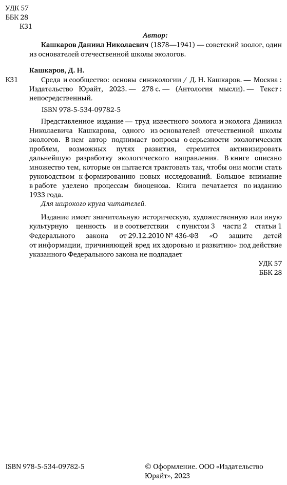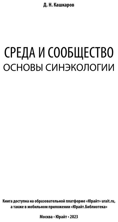 Среда и сообщество: основы синэкологии (Даниил Николаевич Кашкаров); ЮРАЙТ, 2019