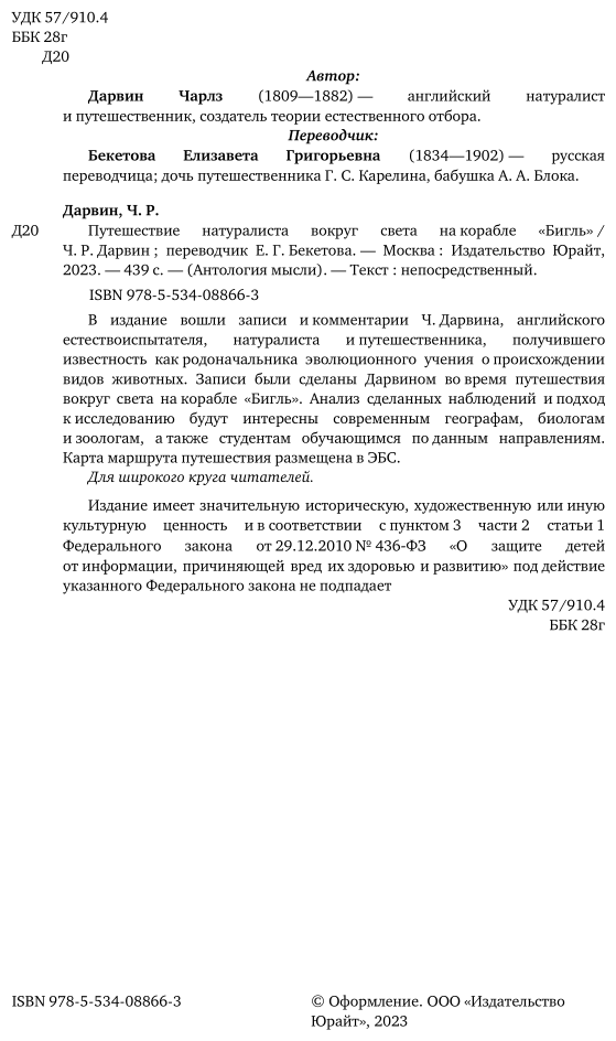 На сегодняшний день товар «Книга: Путешествие натуралиста вокруг света на корабле «Бигль» (Чарлз Дарвин); ЮРАЙТ, 2019» можно купить с кешбеком в 1 магазине: ЛитРес