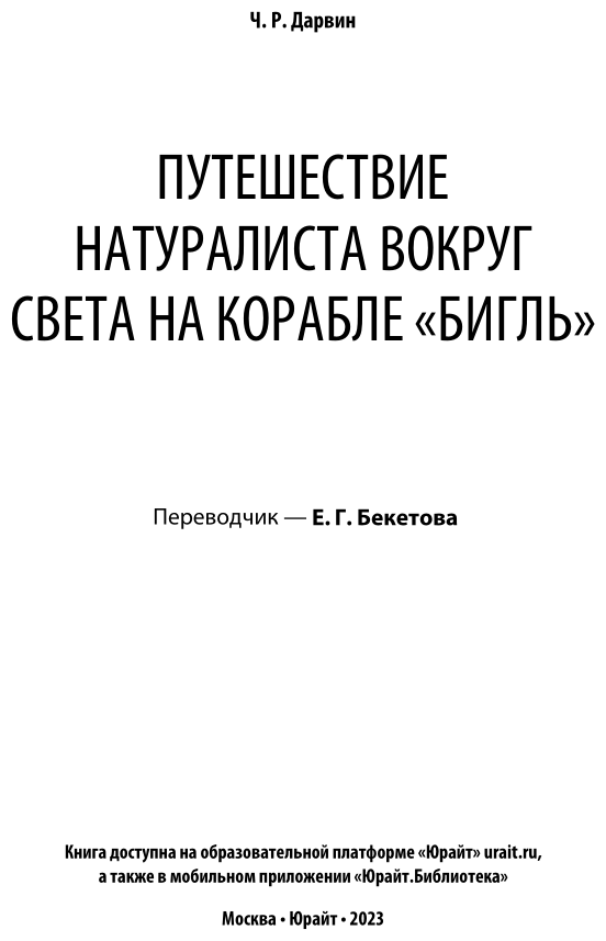 Путешествие натуралиста вокруг света на корабле «Бигль» (Чарлз Дарвин); ЮРАЙТ, 2019