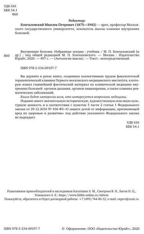 Внутренние болезни. Избранные лекции. Учебник (Владимир Николаевич Смотров); ЮРАЙТ, 2019