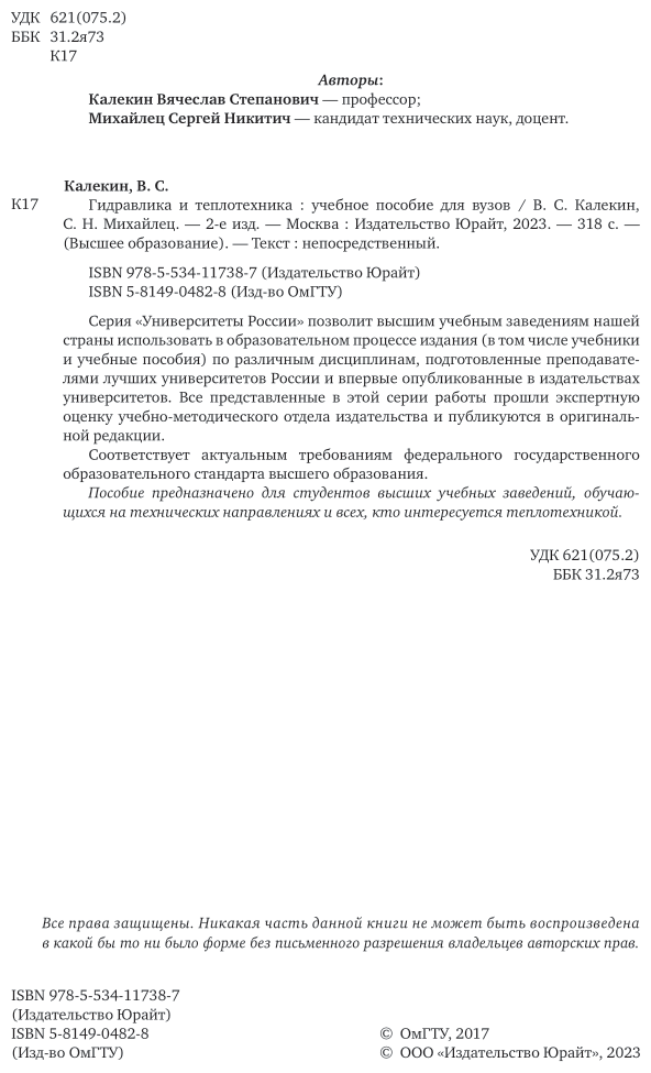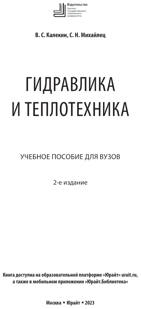 Гидравлика и теплотехника 2-е изд. Учебное пособие для вузов (Вячеслав Степанович Калекин); ЮРАЙТ, 2019