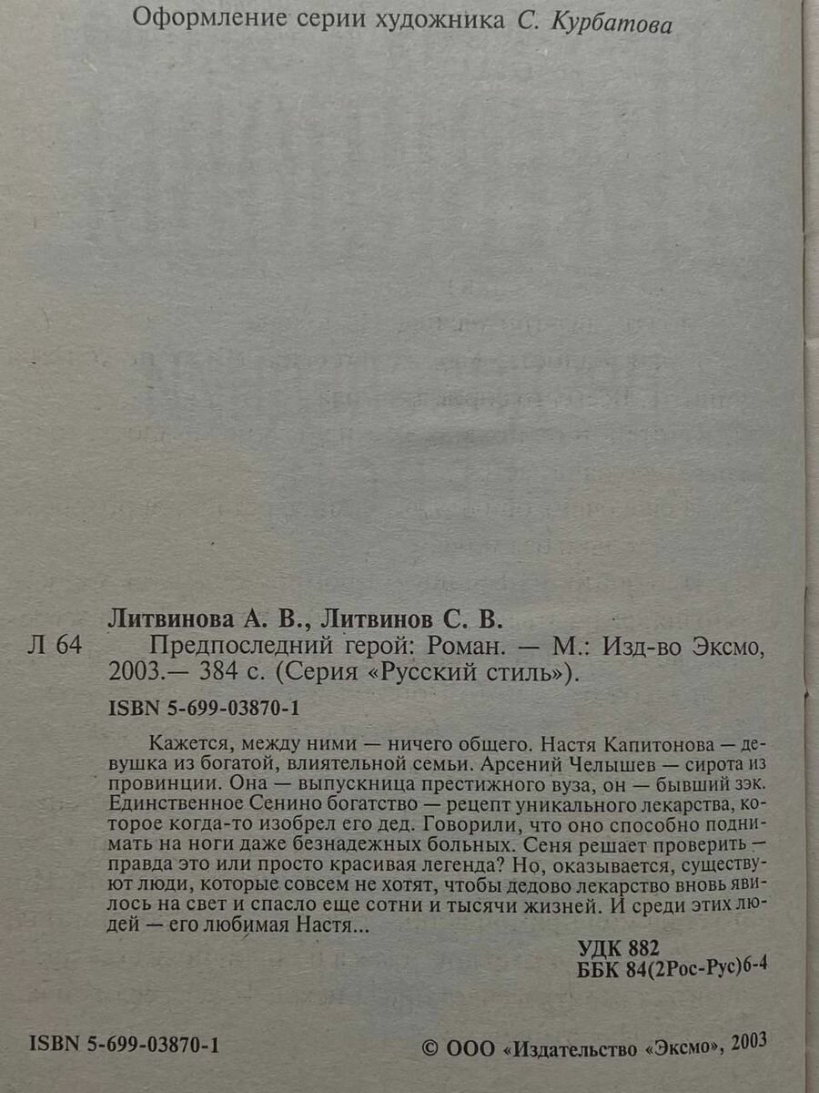 Книга: Предпоследний герой (Анна и Сергей Литвиновы); Эксмо, 2003