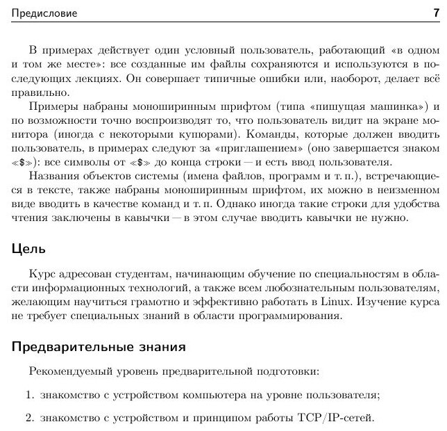 В курсе даются основные понятия операционной системы Linux и важнейшие навыки работы в ней. Изложение сопровождается большим количеством практических примеров. Данный курс может рассматриваться как учебник для студентов, начинающих обучение по специальностям в области информатики и еще не знакомых с ОС Linux. Книга адресована студентам, начинающим обучение по специальностям в области информационных технологий, а также всем любознательным пользователям, желающим научиться грамотно и эффективно работать в Linux.