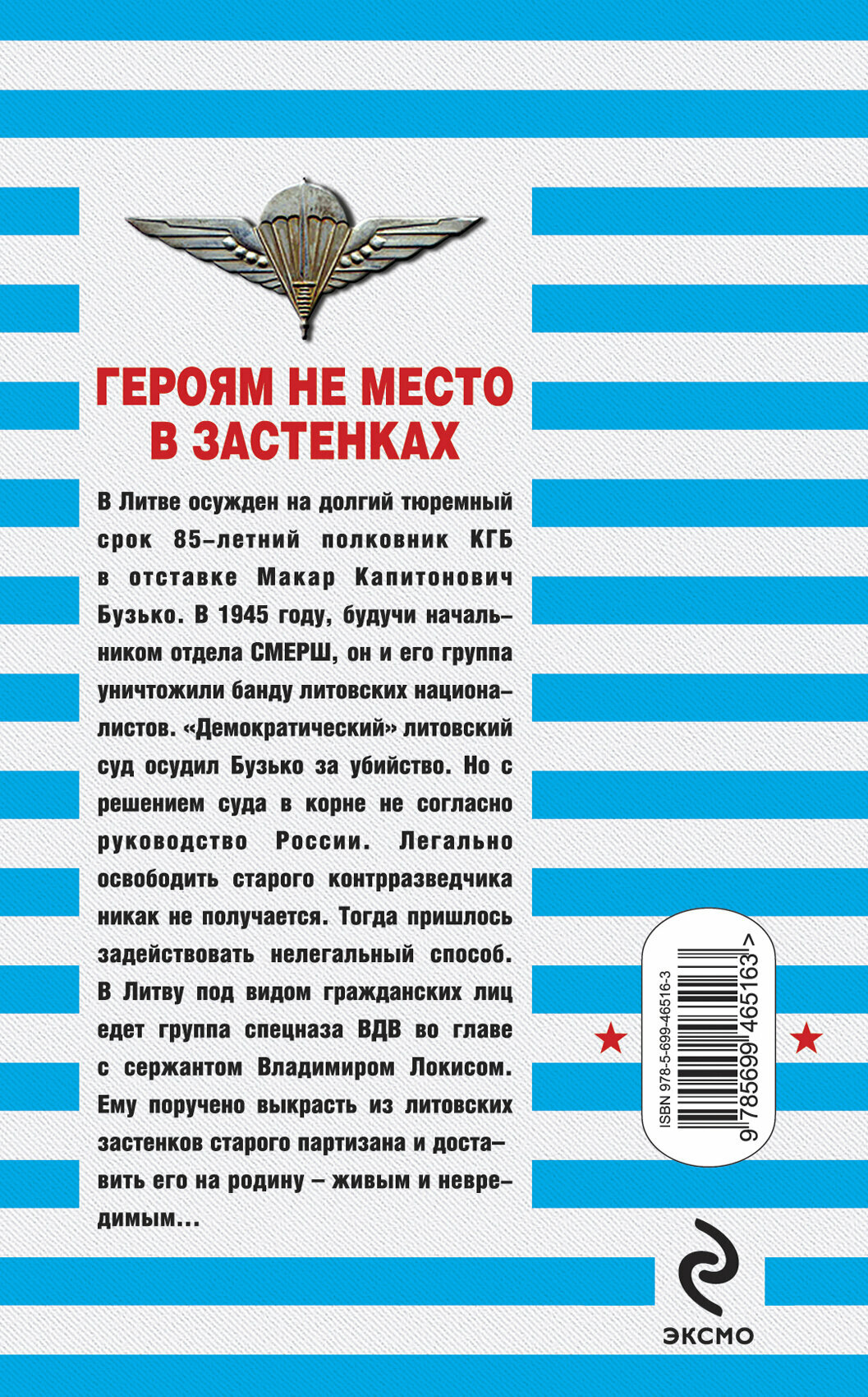 В Литве осужден на долгий тюремный срок 85-летний полковник КГБ в отставке Макар Капитонович Бузько. В 1945 году, будучи начальником отдела СМЕРШ, он и его группа уничтожили банду литовских националистов. «Демократический» литовский суд осудил Бузько за убийство. Но с решением суда в корне не согласно руководство России. Легально освободить старого контрразведчика никак не получается. Тогда пришлось задействовать нелегальный способ. В Литву под видом гражданских лиц едет группа спецназа ВДВ во главе с сержантом Владимиром Локисом. Ему поручено выкрасть из литовских застенков старого партизана и доставить его на родину – живым и невредимым…
