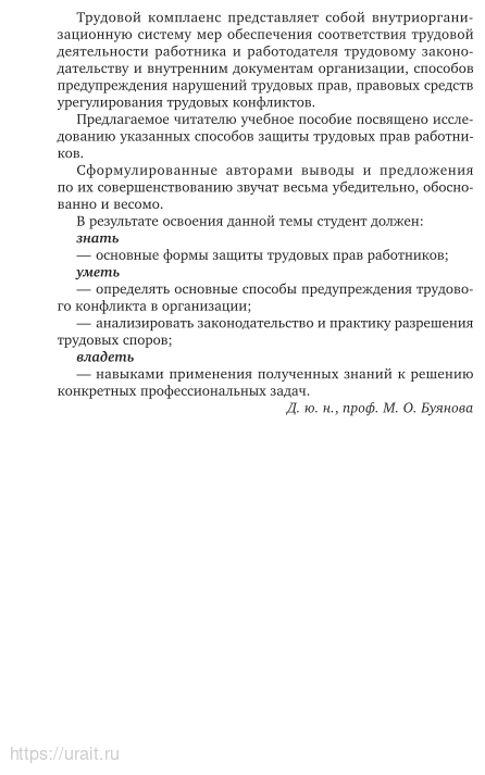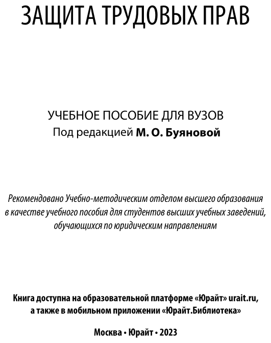 Защита трудовых прав. Учебное пособие для вузов (Буянова Марина Олеговна; Батусова Екатерина Сергеевна; Павловская Ольга Юрьевна; Панарина Мария Михайловна; Сулейманова Фатима Олеговна); Юрайт, 2019