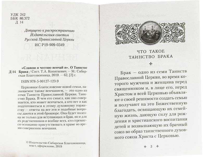 Церковное благословение новой семьи, называемое также венчанием, - это одно из семи Таинств Православной Церкви, Таинство Брака. В чем его смысл, как оно совершается, кто может венчаться, а кто нет и как подготовиться к этому духовному торжеству - ответы на все эти и подобные вопросы даются в этой брошюре. Она будет полезна не только для вступающих в брак, но и для их родственников и вообще всех, кто стремится осознанно присутствовать в храме во время совершения венчания.