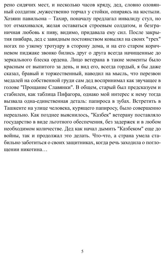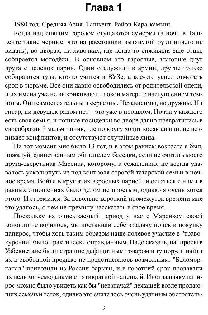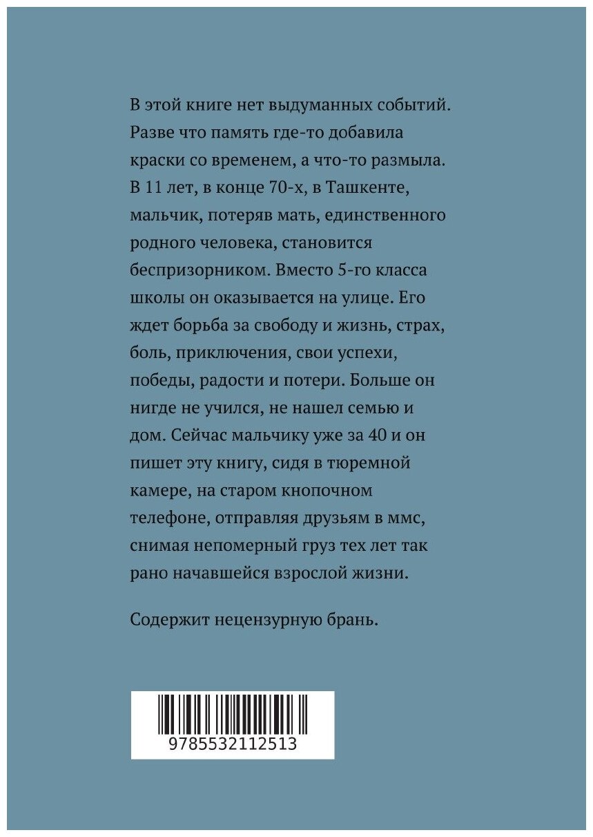 В 11 лет, в конце 70-х, в Ташкенте, мальчик, потеряв мать, единственного родного человека, становится беспризорником. Вместо 5-го класса школы он оказывается на улице. Его ждет борьба за свободу и жизнь, страх, боль, приключения, свои успехи, победы, радости и потери. Больше он нигде не учился, не нашел семью и дом. Сейчас мальчику уже за 40 и он пишет эту книгу, сидя в тюремной камере, на старом кнопочном телефоне, отправляя друзьям в ммс, снимая непомерный груз тех лет так рано начавшейся взрослой жизни.