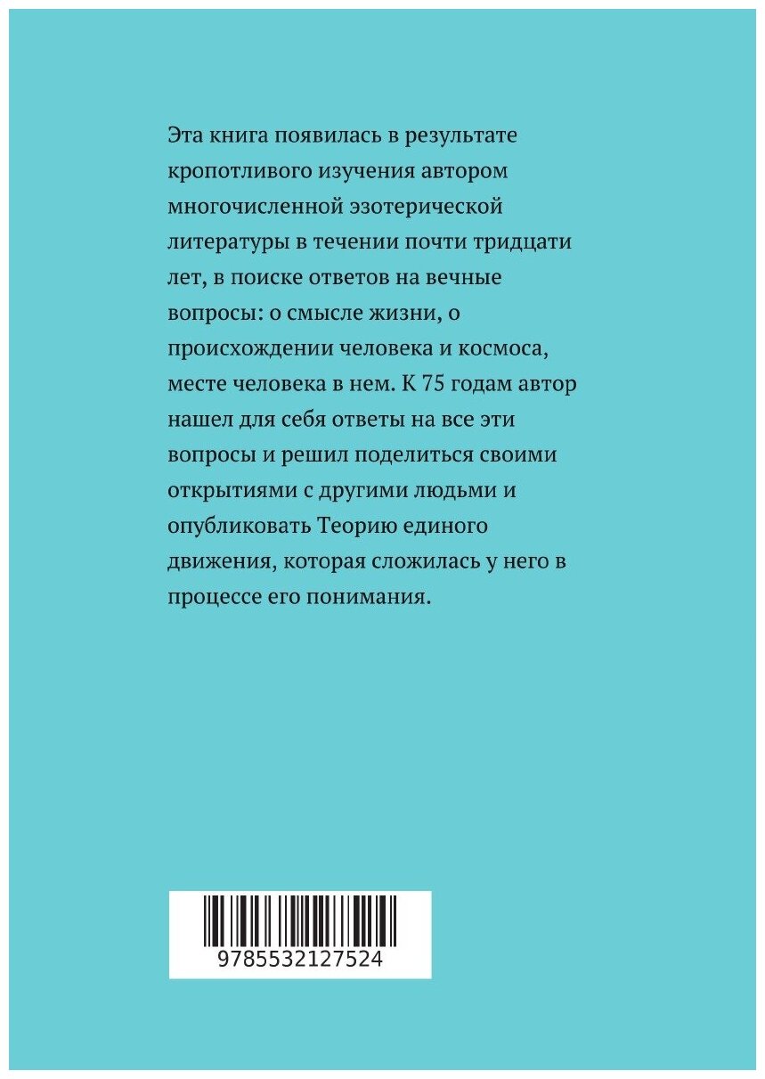 Эта книга появилась в результате кропотливого изучения автором многочисленной эзотерической литературы в течении почти тридцати лет, в поиске ответов на вечные вопросы: о смысле жизни, о происхождении человека и космоса, месте человека в нем. К 75 годам автор нашел для себя ответы на все эти вопросы и решил поделиться своими открытиями с другими людьми и опубликовать Теорию единого движения, которая сложилась у него в процессе его понимания.
