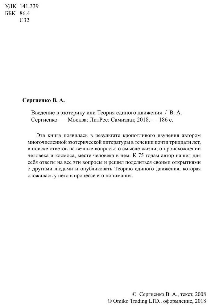 Введение в эзотерику или Теория единого движения (Владимир Алексеевич Сергиенко); Автор, 2008