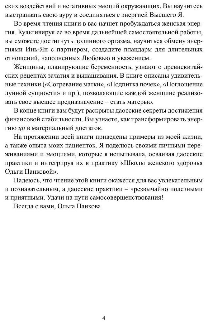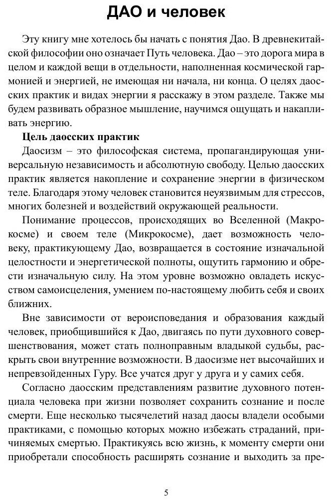 Дао в древнекитайской философии означает Путь человека. Эта книга будет вашим путеводителем в мир Дао, наполненный космической гармонией и энергией. Уже во время чтения вы сможете активировать в себе жизненную энергию и научиться пользоваться ей во благо своего здоровья и благополучия. Будущим мамам будет интересно узнать о даосских секретах зачатия и вынашивания беременности. Каждая женщина найдет в книге рецепт гармонии, финансовой стабильности и счастья на долгие годы.