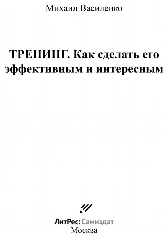Тренинг. Как сделать его эффективным и интересным (Михаил Александрович Василенко); Автор, 2018