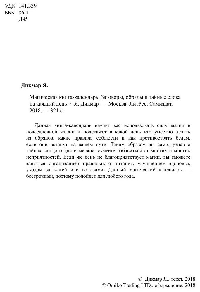 Магическая книга-календарь. Заговоры обряды и тайные слова на каждый день (Ян Дикмар); Автор, 2018