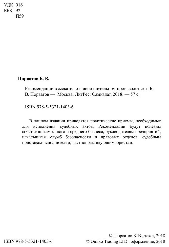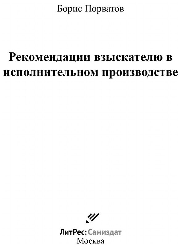 Рекомендации взыскателю в исполнительном производстве (Борис Владимирович Порватов); Автор, 2018