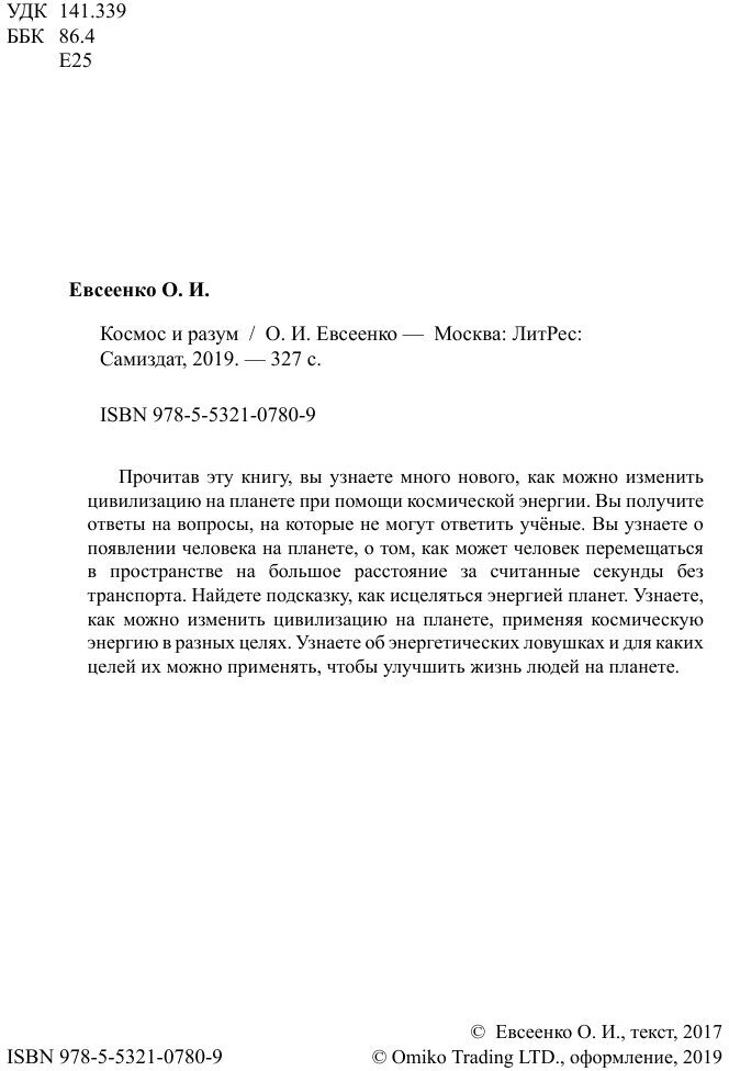 Книга: Космос и разум (Ольга Ивановна Евсеенко); Автор, 2017