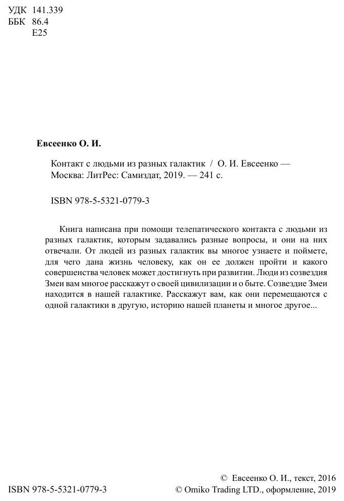Контакт с людьми из разных галактик (Ольга Ивановна Евсеенко); Автор, 2016