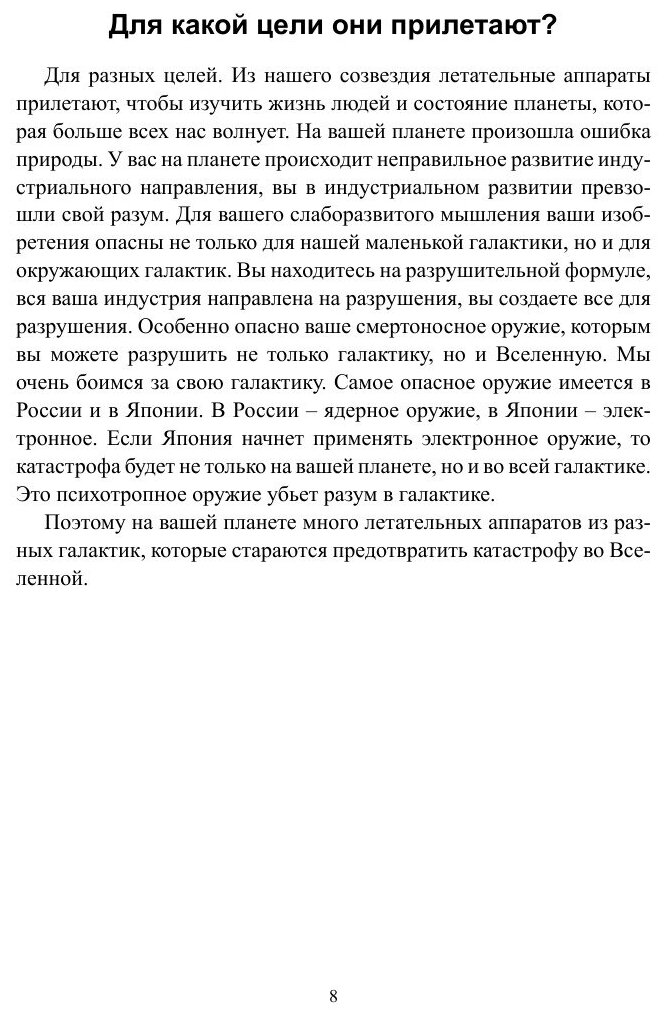 Книга очень понравилась. Много информации пересекается с другими контактерами, что вызывает доверие. Не всегда понятен язык контактора… Некоторые моменты не совсем точны. Например, на всех планетах, где есть гуманоиды, их называют людьми, что не есть верно. Так как есть много планет, где гуманоиды не похожи на нас. Единственно, что объединяет - наличие души, как и у людей.