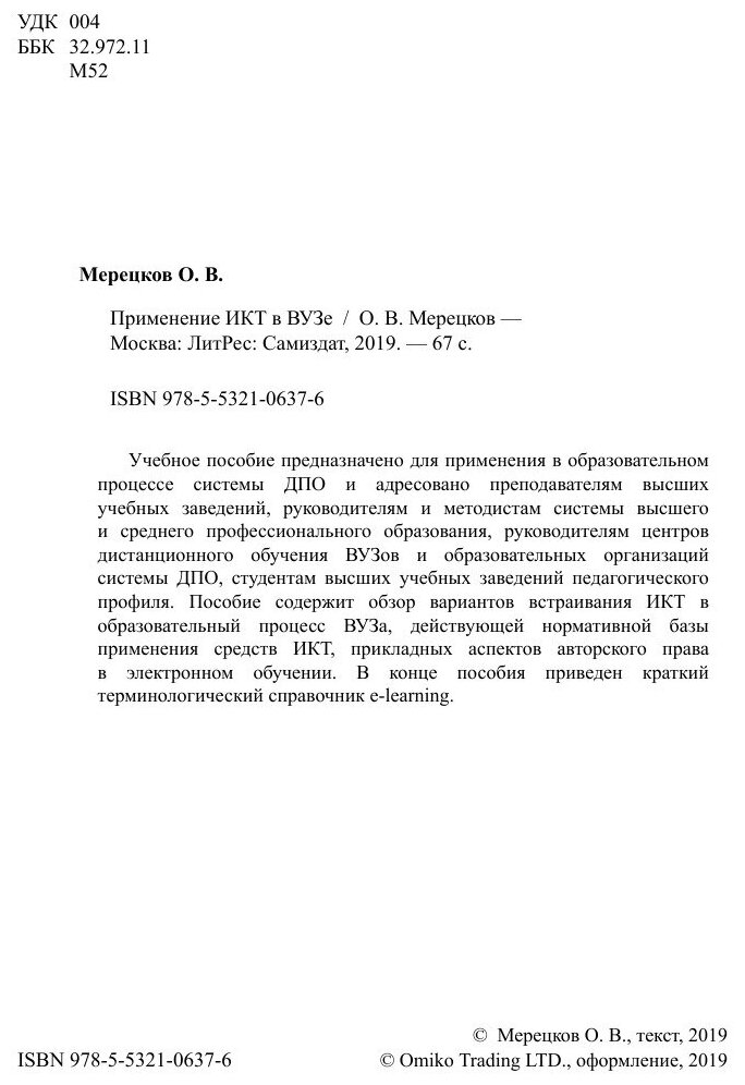 Книга: Применение ИКТ в ВУЗе (Олег Вадимович Мерецков); Автор, 2019