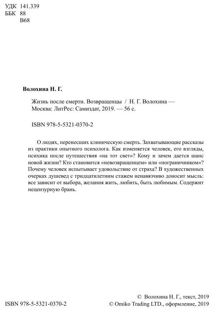 Жизнь после смерти. Возвращенцы (Наталья Волохина); Автор, 2019
