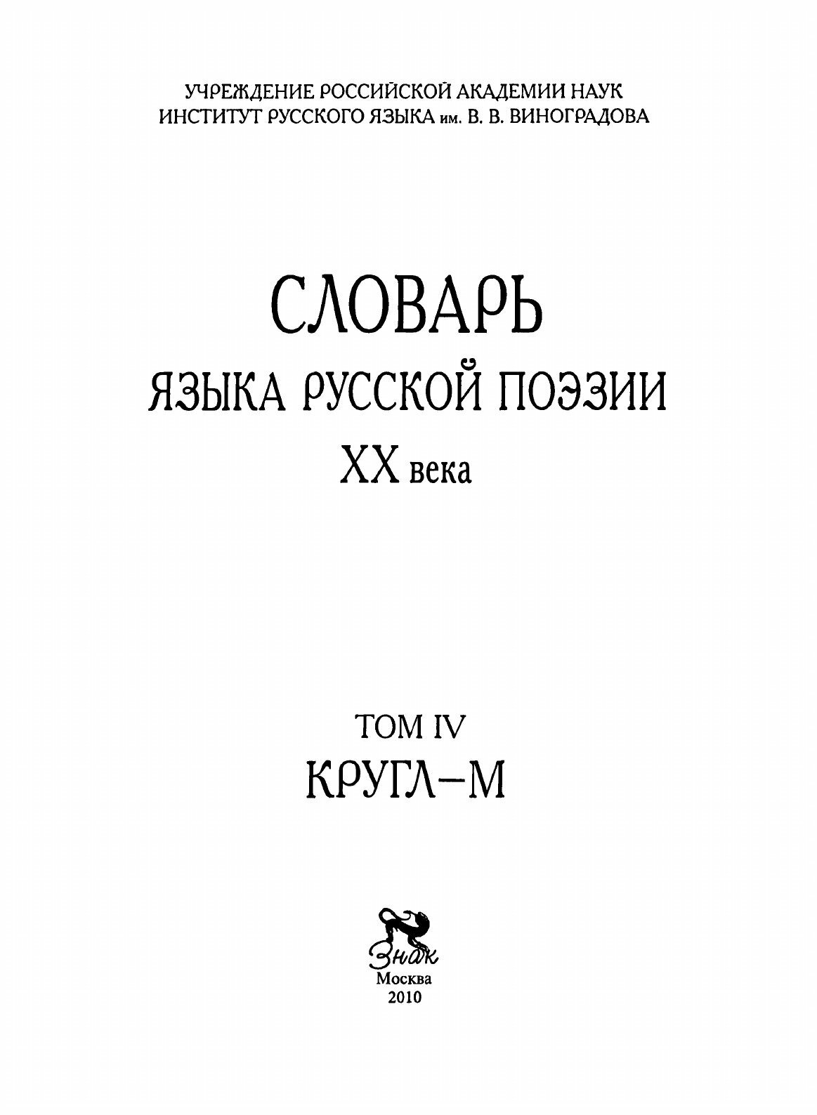 Словарь языка русской поэзии XX века. Том IV. Кругл – М (Коллектив авторов); Языки Славянской Культуры, 2010