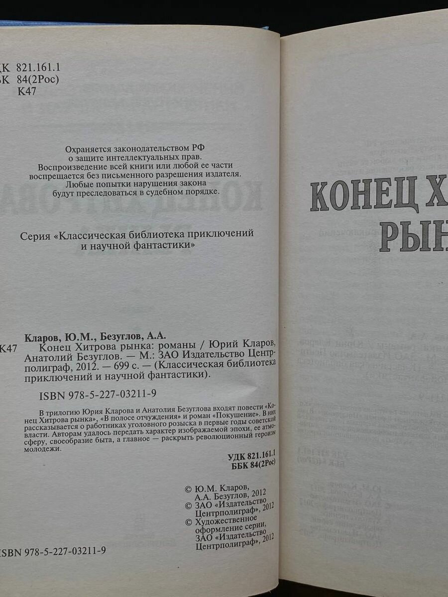 Сервис сравнения цен СкидкаГИД предлагает сравнить цены на товар «Книга: Конец Хитрова рынка (Юрий Михайлович Кларов); Центрполиграф, 2012»
