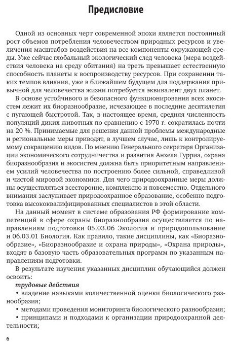 В учебнике приведены основные сведения по биологическому разнообразию, охране природы на разных уровнях ее организации и биосферы в целом. Рассмотрены этапы развития охраны природы и сохранения биоразнообразия, влияние антропогенных факторов на исчезновение и сокращение численности растений, животных, микроорганизмов и экосистем. Привлекается внимание к проблеме сохранения Всемирного природного и культурного наследия. Соответствует актуальным требованиям Федерального государственного образовательного стандарта среднего профессионального образования и профессиональным требованиям. Для студентов образовательных учреждений среднего профессионального образования, обучающихся по направлениям подготовки 05.03.06 Экология и природопользование и 06.03.01 Биология, а также аспирантов и преподавателей.