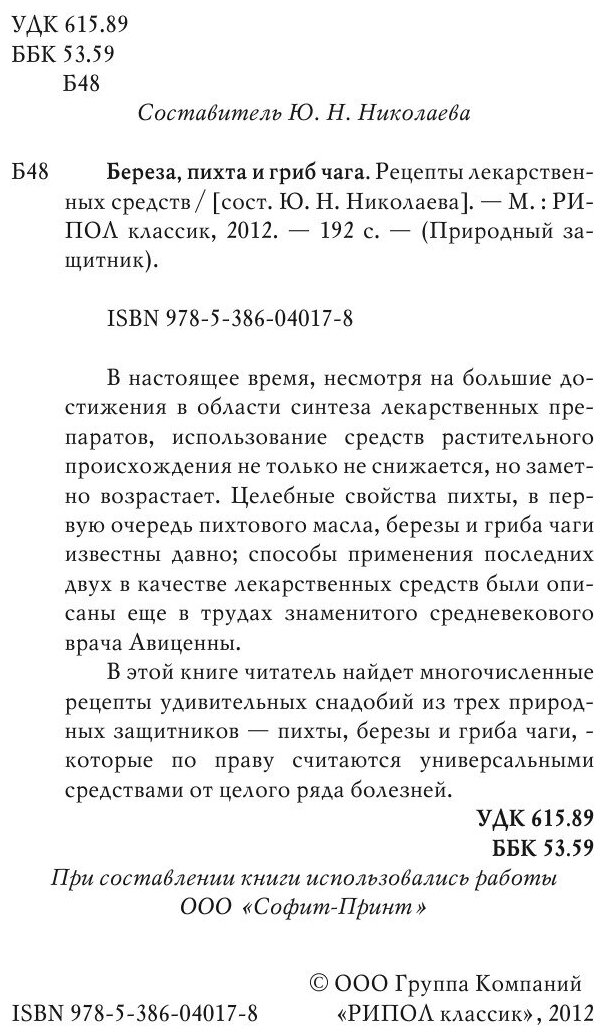 Береза пихта гриб чага. Рецепты лекарственных средств (Группа авторов); РИПОЛ Классик, 2017