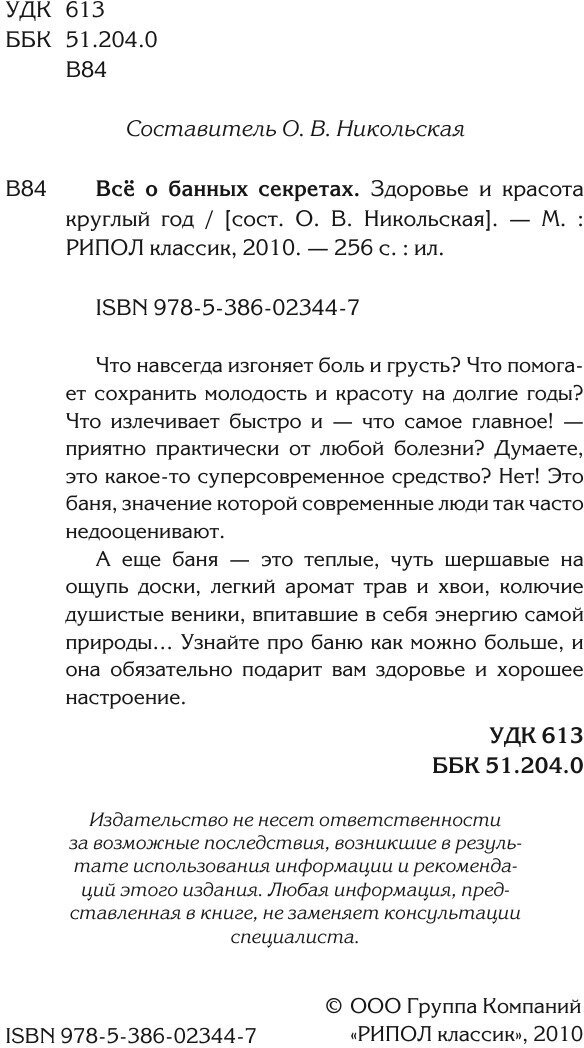 Все о банных секретах. Здоровье и красота круглый год (Группа авторов); РИПОЛ Классик, 2010