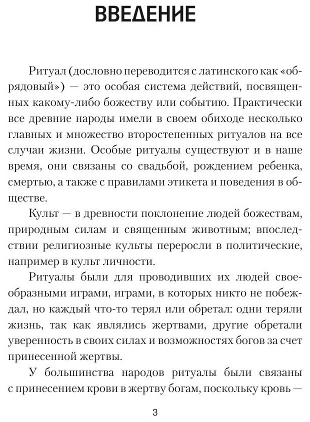 Очень поверхностная книга. Интересна будет скорее детям и подросткам, ну, и тем, кто вообще не знает, что такое "ритуал" или "жрец". Написана, как показалось, тоже в стиле "детских энциклопедий". Может служить справочником для каких-то общих вещей, но лучше лишний раз проверить данную в книге информацию или обратиться к другим источникам, потому что очень много неточностей и обощений.