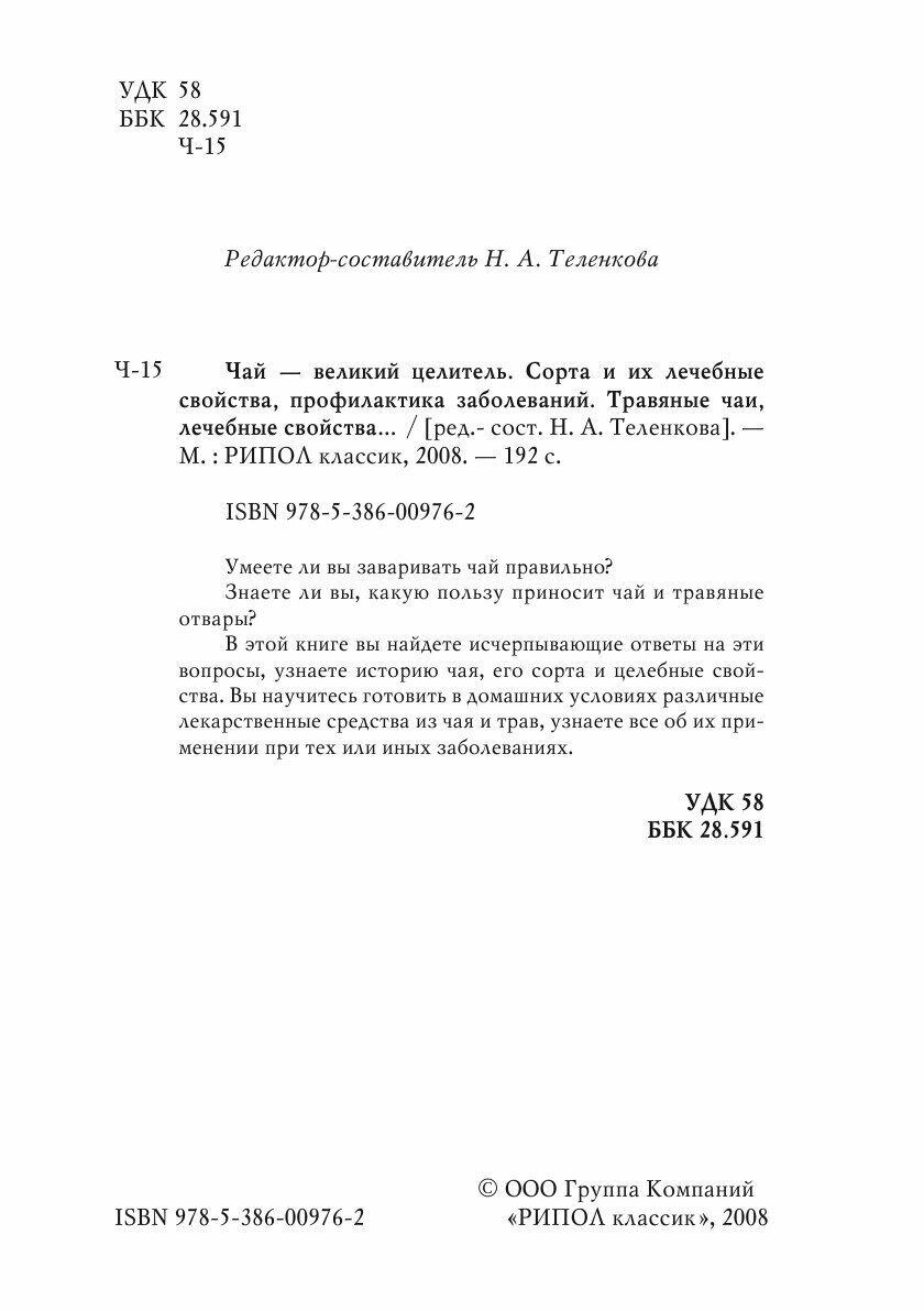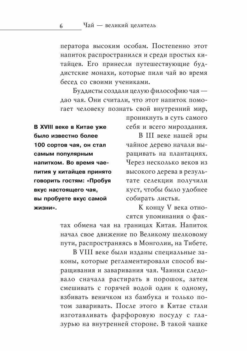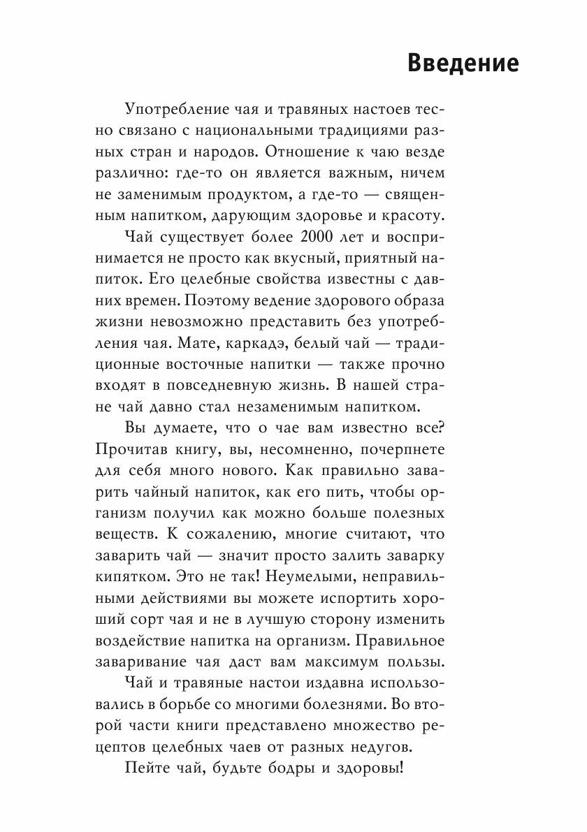Умеете ли вы заваривать чай правильно? Знаете ли вы, какую пользу приносит чай и травяные отвары? В этой книге вы найдете исчерпывающие ответы на эти вопросы, узнаете историю чая, его сорта и целебные свойства. Вы научитесь готовить в домашних условиях различные лекарственные средства из чая и трав, узнаете все об их применении при тех или иных заболеваниях.