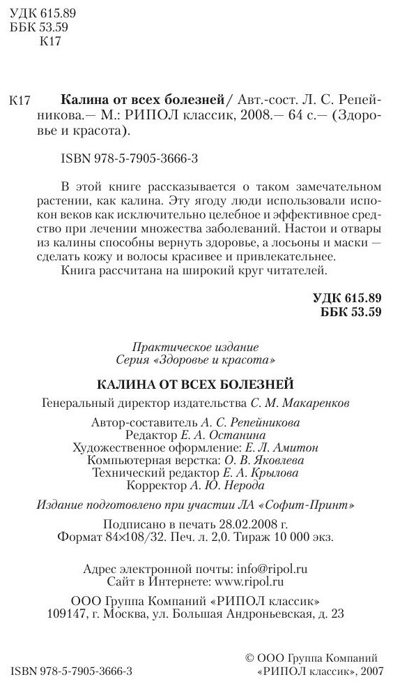 Книга: Калина от всех болезней (Группа авторов); РИПОЛ Классик, 2008