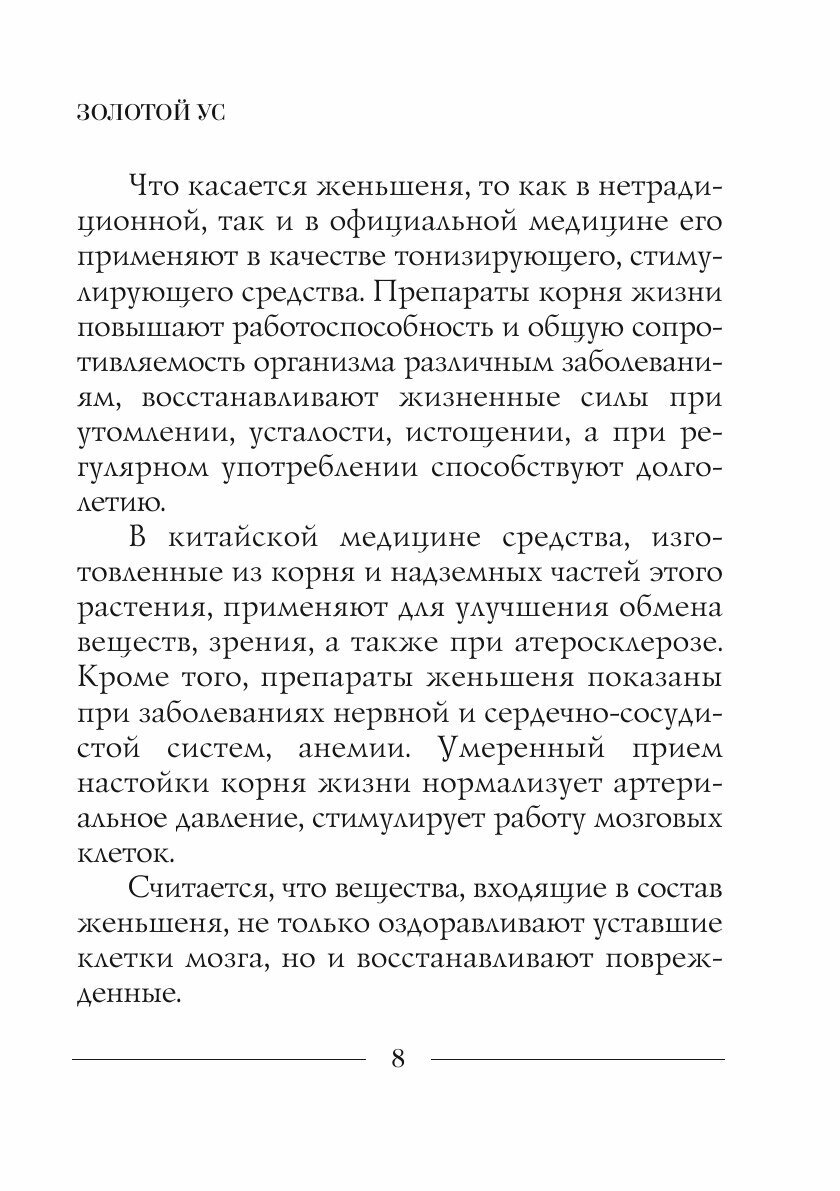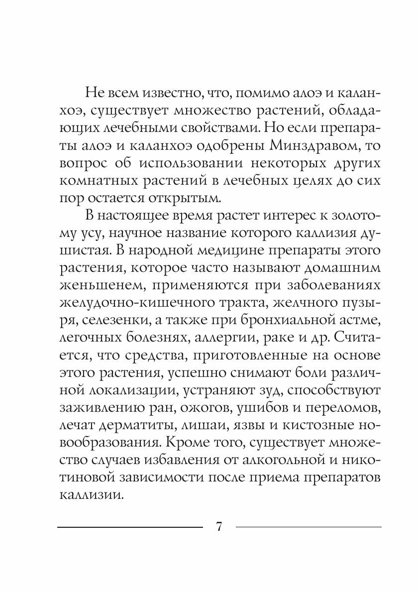 Целительная сила золотого уса проверена опытом тысяч людей. Простое и неприхотливое растение окажет неоценимую помощь при лечении многих заболеваний, таких как: остеохондроз, ревматизм, гипертония, атеросклероз, бронхиальная астма, болезни сердца, раковые заболевания. Сок этого растения по праву зовется «живой водой» и обладает высокими ранозаживляющими свойствами. В этой книге вы найдете испытанные временем рецепты спиртовых настоек, мазей, масел, отваров из золотого уса, рекомендации по применению женьшеня, меда, алоэ и многих других лекарственных растений.