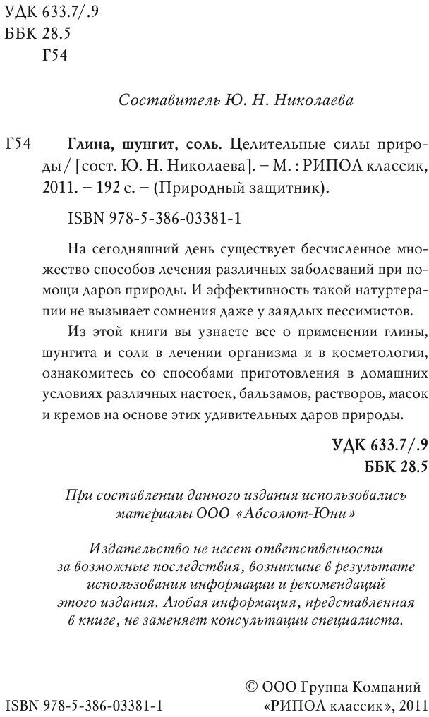 Глина шунгит соль. Целительные силы природы (Группа авторов); РИПОЛ Классик, 2020