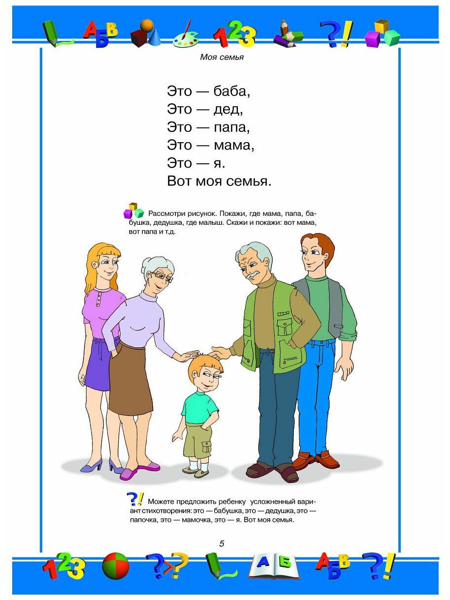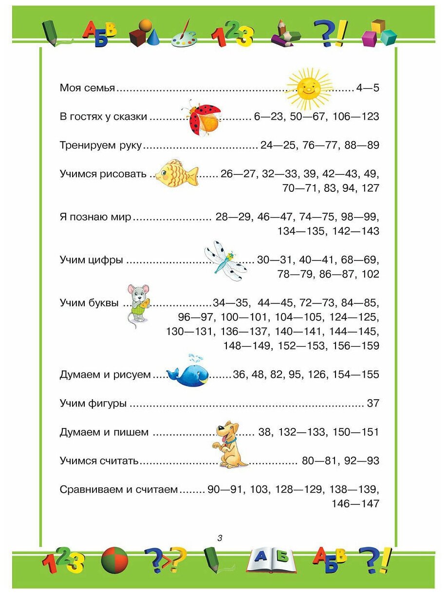 Наверное, все родители хотят, чтобы их ребенок к моменту поступления в школу знал буквы и цифры, умел выразительно говорить, имел представление об окружающем мире, а еще мог бы считать и писать. Предлагаемое издание содержит увлекательные задания, выполняя которые ваш малыш узнает много интересного, пополнит свой словарный запас и расширит кругозор, выучит счет и алфавит, потренируется писать первые в своей жизни цифры и буквы. Кроме того, родители смогут почитать вместе с малышами стихи и любимые сказки. Большое внимание в книге уделено развитию у ребенка внимания, памяти, мышления и воображения, а также координации движений рук и мелкой моторики.