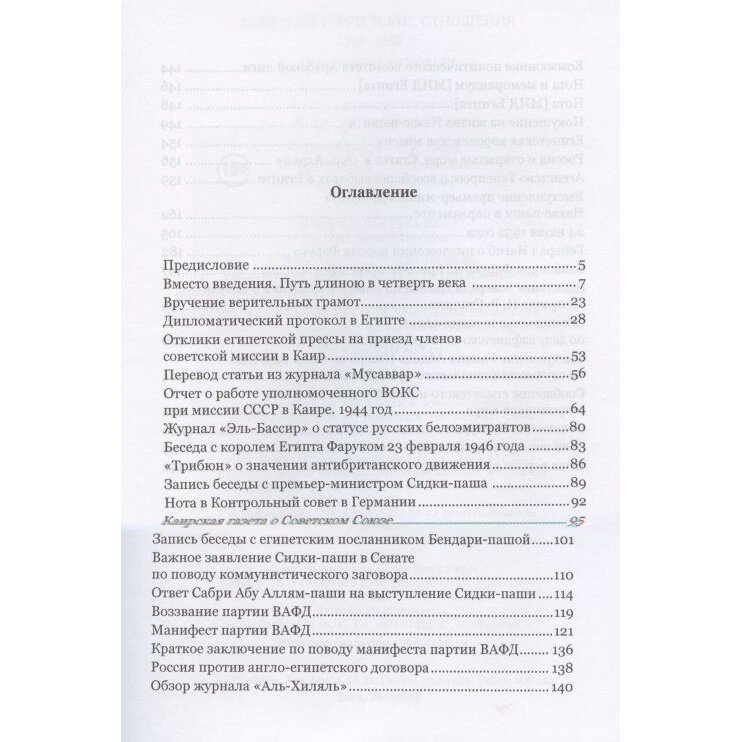 В сборник вошли документы из российских архивов о советско-египетских отношениях 1943–1955 годов. Им предшествует очерк о состоянии отношений СССР и Египта до открытия советской миссии в конце 1943 года.