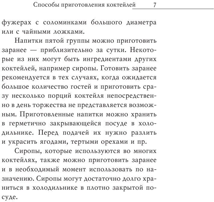 всё, что меня интересует оказалось в одном месте: от алкогольных коктейлей до молочных, диетических, лечебных и даже… отрезвляющих (а вы знали, что такие существуют?) Рецепты реальны к исполнению, есть советы по оформлению и употреблению, история возникновения этого направления в коктейльном искусстве. Я рада, что у меня есть теперь такая книга