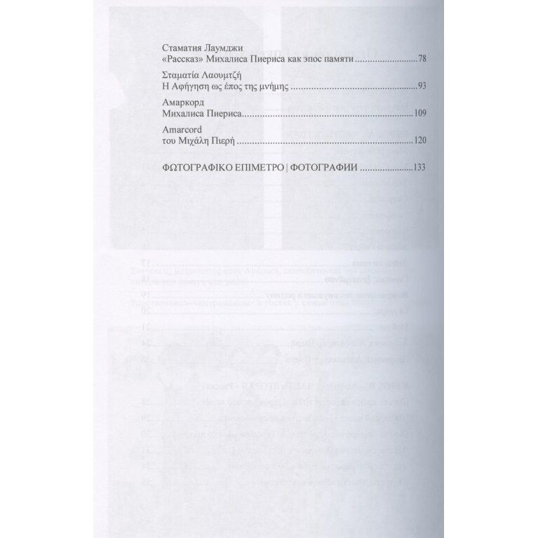Сборник стихотворений современного кипрского поэта Михалиса Пиериса посвящен воспоминаниям о матери, о детстве, прошедшем на Кипре в 50-е годы, об исторических событиях той эпохи, размышлениям о связи прошлого и настоящего страны. Книга также включает две академические статьи, посвященные творчеству автора, и фотографии из личного архива.