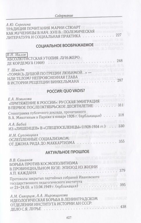 В статьях из традиционного раздела "Россия: quo vadis?" рассматриваются ключевые проблемы отечественной истории после 1917 г. Впервые публикуется доклад основателя народно-социалистической партии историка В. А. Мякотина на I съезде русской эмиграции в Париже об итогах первого послереволюционного десятилетия. В статье А. Бабия на материалах районных архивов исследуется положение раскулаченных крестьян и лишенных избирательных прав горожан на рубеже 20-х - 30-х гг. В рубрике "Актуальное прошлое", открытой выпуском альманаха 2007 г., читатель познакомится с неизвестными документами периода "борьбы с космополитизмом", которые отныне становятся доступны широкой аудитории.